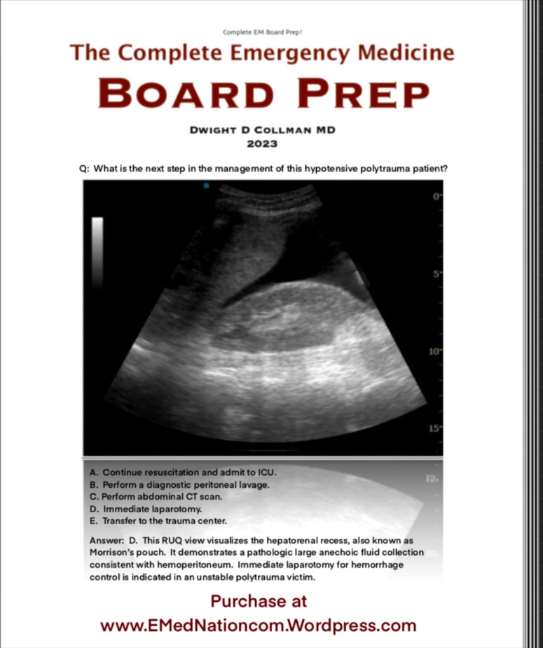 Discount for residents in training. Please email a copy of a letter of verification from your residency program to DwightCollman@emednation.com. The complete preparation you need to prepare for certification in emergency medicine. 1192 pages. Written and illustrated by Dwight Collman, MD. This text is now available as of Nov 1, 2023.
