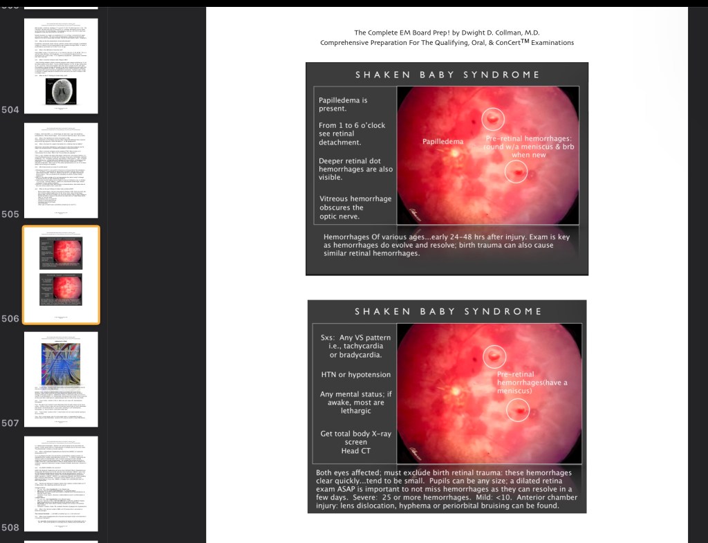 SBS Findings on retinal examination. From my new eText, “The Complete Emergency Medicine Board Prep!” 1192 page’s, fully illustrated, and available now for purchase on my homepage. Substantial discount for physicians-in-training and medical students.